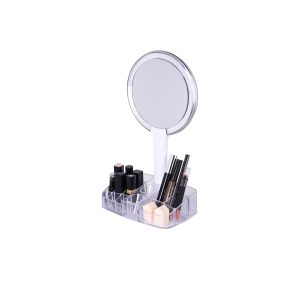 【Storage function】Detachable stand for portable and traveling designing, the round storage tray on the stand for containing your lipstick, eyebrow brush, eyelash brush, facial cotton pad, mask, earrings, rings. It is more than a mirror.